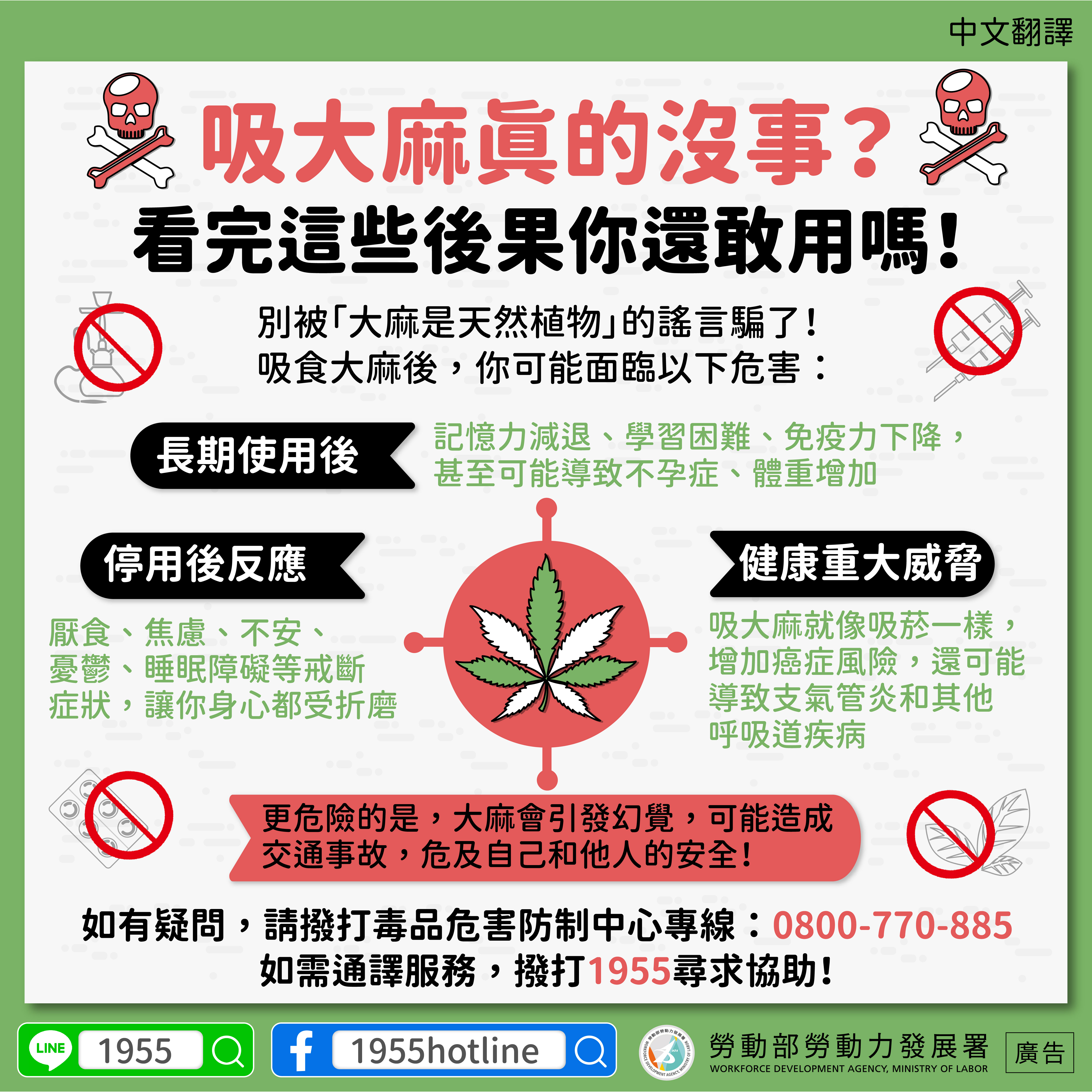 如有疑問,請撥打毒品危害防制中心專線:0800-770-885