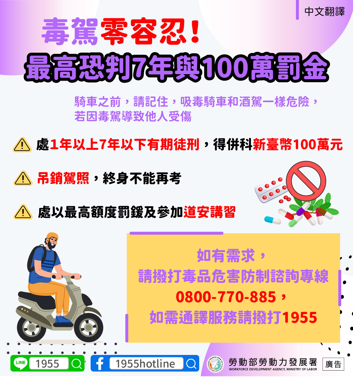 ▍Nol Toleransi bagi Pengendara Pengguna Narkoba! Hukuman maksimal 7 tahun penjara dan denda NT$1 juta